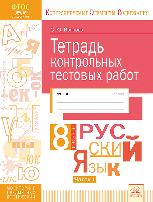 | Контрольные тестовые работы. Русский язык. 8 класс. В 2-х частях. Часть 1. | |