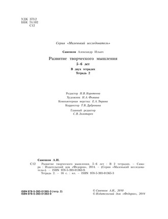 | Содержание: Это издание входит в комплект тетрадей «Маленький исследователь» с развивающими заданиями и упражнениями для обучения дома и в детском саду. Автор комплекта – доктор психологических наук, доктор педагогических наук, профессор Александр Ильич САВЕНКОВ. Самые глубокие и прочные знания – это знания, полученные самостоятельно, в результате исследовательского поиска. Чтобы личность маленького человека гармонично развивалась, важно научить ребенка мыслить логически и вместе с тем нестандартно, творчески. На достижение этих целей и направлены задания предлагаемых тетрадей. С помощью заданий и упражнений тетрадей "Развитие творческого мышления" дети развивают навыки оригинального мышления, прослеживают связи между событиями и явлениями, творчески разрабатывают идеи, учатся гибкости мышления. | |