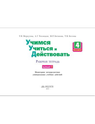 | Учимся учиться и действовать. Рабочая тетрадь 4 класс. Вариант 1. |