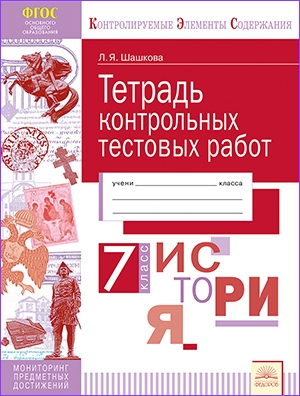 Тетрадь контрольных тестовых работ предназначена для мониторинга предметных достижений семиклассников по истории России. Все задания разработаны на основе контролируемых элементов содержания, определенных кодификатором ФИПИ по предмету «История».