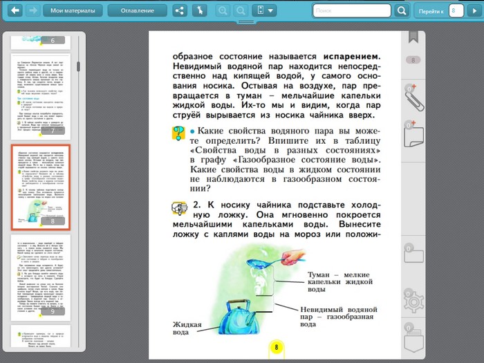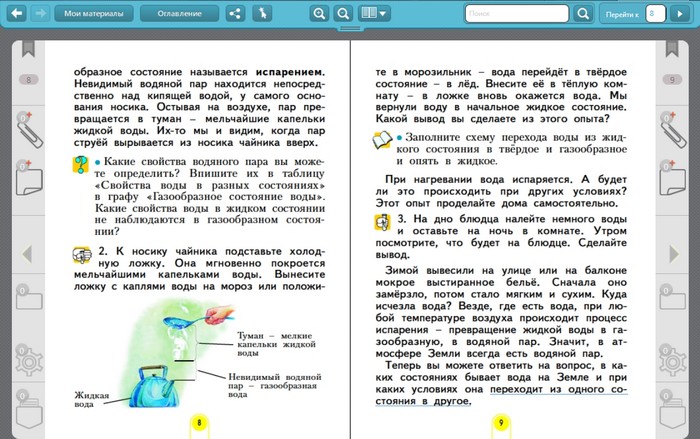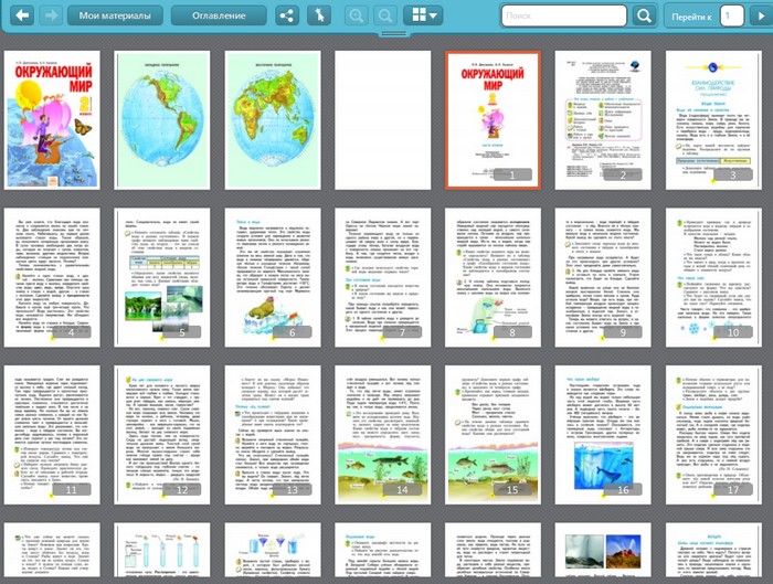 Разработчики предоставили педагогам и ученикам разнообразные возможности навигации по учебнику (можно переходить к нужному материалу через интерактивное оглавление или через функцию «переход к странице», можно через просмотр в режиме «плитка» выбрать ту или иную страницу, можно воспользоваться функцией поиска – и нужное вам слово или понятие, упоминаемое в учебнике, будет найдено).