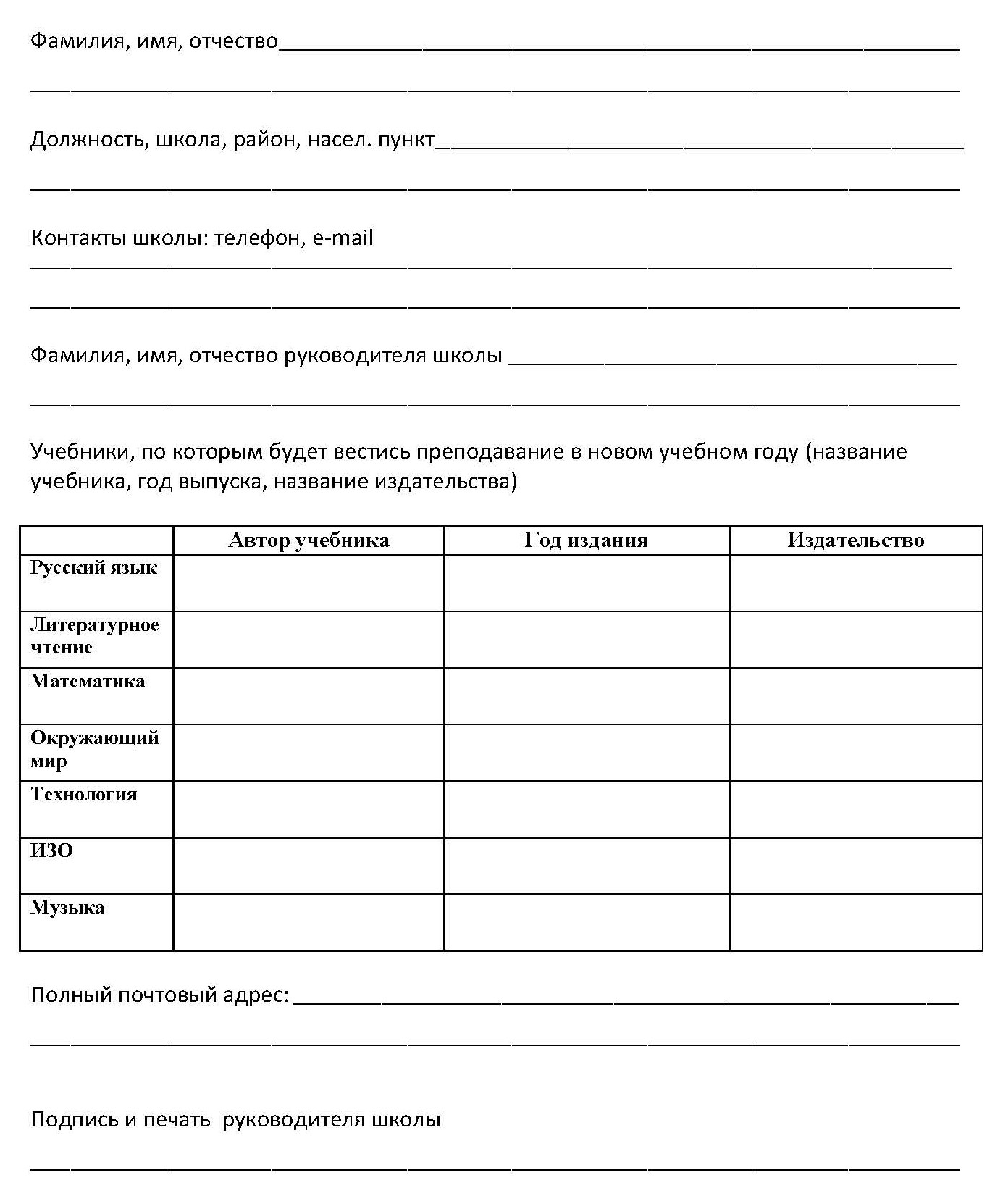 4) Отправьте до 4 октября письмо с отсканированной анкетой по адресу: sistemazankova@yandex.ru. В теме письма укажите: «Работаю в 1 классе».