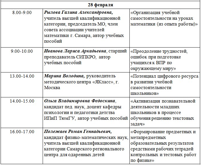- 27–28 февраля онлайн-выступление авторов, методистов, учителей-практиков;
