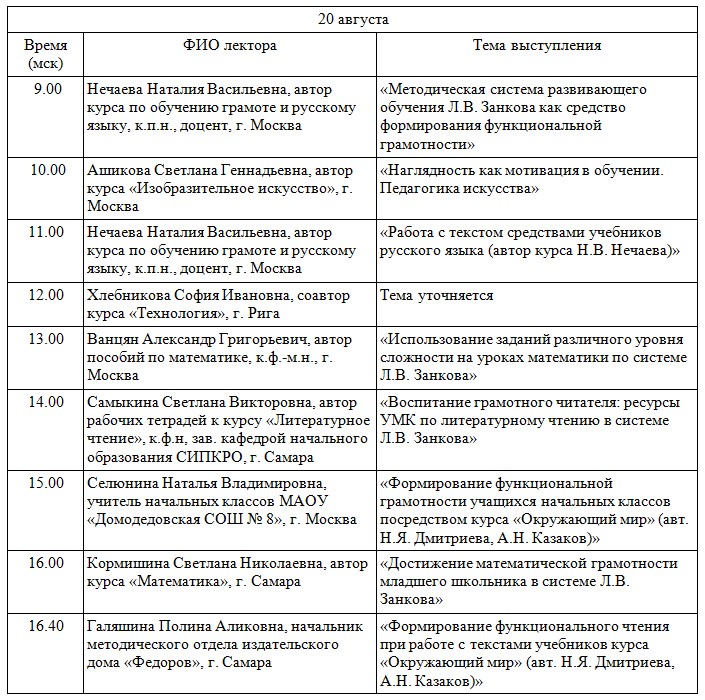 - 20 августа – онлайн-выступление авторов, методистов, учителей-практиков;