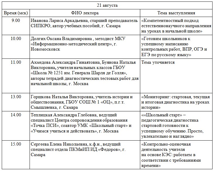 - 21-22 августа – онлайн-выступление авторов, методистов, учителей-практиков;