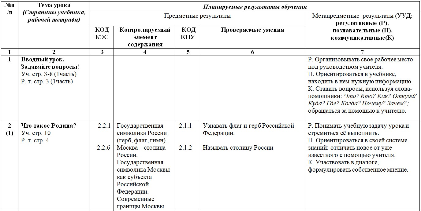 Календарно-тематическое планирование уроков по окружающему миру в 1 классе