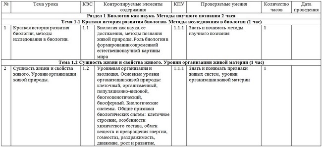 Календарно-тематическое планирование уроков по биологии в 10 классе