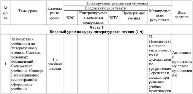 Календарно-тематическое планирование уроков по литературному чтению в 4 классе