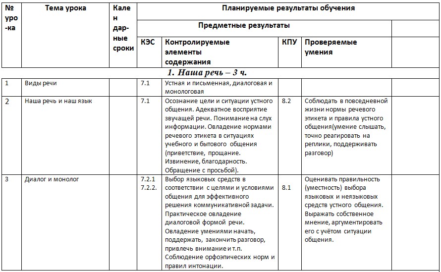 Календарно-тематическое планирование уроков по русскому языку во 2 классе