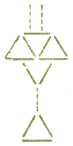 Задачу решите, вглядевшись в рисунок. На нем изображена треугольная пирамида, все грани которой являются равными между собою равносторонними треугольниками. Положите на стол три спички так, чтобы они составили треугольник, затем поставьте остальные спички, так, чтобы они нижними своими концами упирались в углы лежащего на столе треугольника, а верхними концами соединялись вместе над его серединою, - и вы выполните то, что требуется задачей.