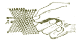 21. Эта на первый взгляд трудная задача решается, однако, легко. Положим на стол спичку А (рис слева), а поперек этой спички положим затем вплотную одну около другой попеременно вправо и влево головоломкам четырнадцать спичек, так, чтобы их головки выдавались на 1-1,5 сантиметра над А, в то время как противоположные концы опирались бы на стол. Сверху в углубление, образуемое верхними частями спичек, положим шестнадцатую спичку параллельно А. Если поднять теперь спичку А за конец, то, к нашему удивлению, вместе с ней поднимутся и остальные 15 спичек (рис. справа).