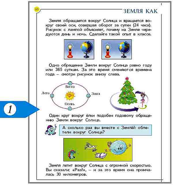Знакомство с курсом окружающего мира дети начинают с макрообъектов (1). Они узнают, как называется планета, на которой они живут, каков ее "адрес". Сведения об особенностях движения Земли в космическом пространстве объясняют первоклассникам, почему на Земле происходит чередование времен года, сменяются день и ночь, существуют разные природные зоны. Постепенно знания о неживой природе дополняются сведениями о многообразии жизненных форм организмов. И дети делают важное открытие, что жизнь - это уникальное природное явление, она неповторима и хрупка! Ученики начинают понимать, что в мире все взаимосвязано и подчинено общим законам развития природы и общества. Школьники познают многоуровневую организацию окружающего их мира и одновременно постигают значимость своего внутреннего мира.
