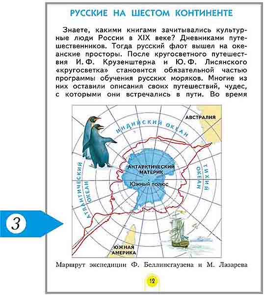 Учебники вовлекают ребенка в мир географических и научных открытий (3). Удивление, радость, осознание опасности - вот то, что испытывает первооткрыватель новых земель. Эти же чувства передаются юному читателю. Эмоциональная сопричастность радости открытия нового позволяет ученику легко запомнить изучаемый материал.