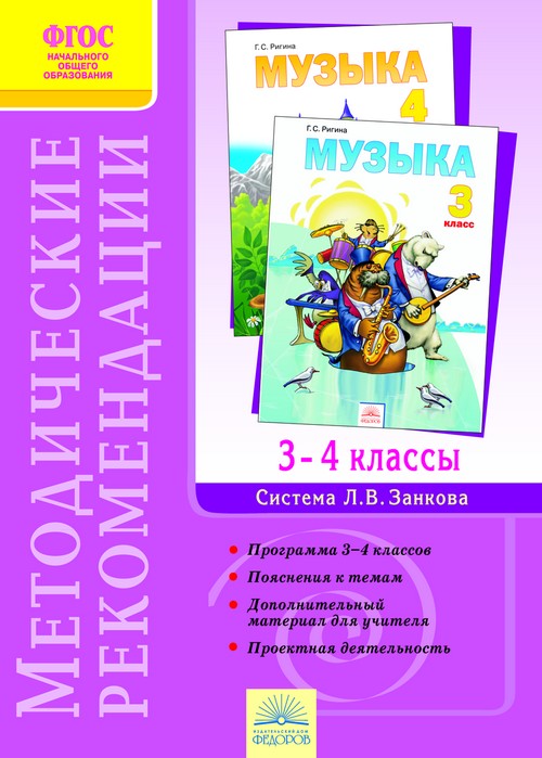Методические рекомендации к курсу «Музыка» (авт. Г.С. Ригина) для 3 и 4 классов адресованы учителям, работающим по системе развивающего обучения Л.В. Занкова, и тем, кто использует в своей практике элементы разных учебно-методических комплектов.