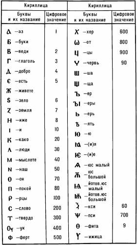 8. Сколько букв было в глаголице? (40). В кириллице? (43).