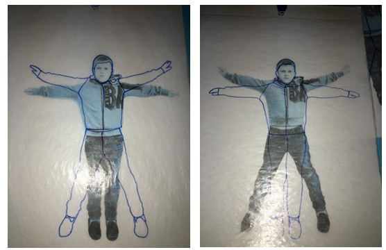 По принципу витрувианского человека Леонардо да Винчи проверили правила золотого сечения и правильных пропорций человека на фотографии ребенка.