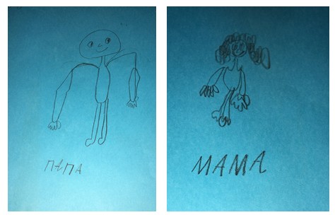 С чем мальчик пришёл? Для определения его стартового уровня первым делом были сделаны тестовые рисунки - это то, что умеет ребёнок до начала обучения.
