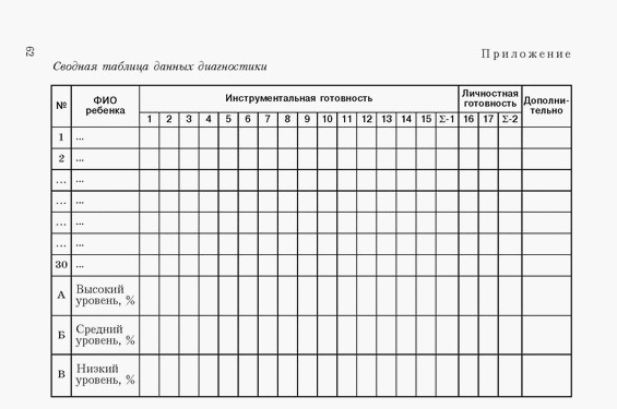 Мы постарались максимально упростить процедуру обработки результатов диагностики. Все данные заносятся в 2 сводные таблицы, что в дальнейшем позволяет использовать их для качественного педагогического анализа.